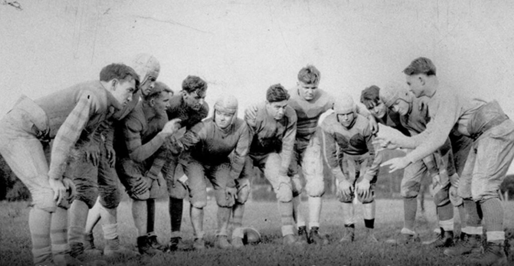 It wasn’t long before teams who had players with normal hearing took notice; Oregon State pioneered this new huddle idea to great advantage, and by the 1920s, the huddle was standard everywhere. In 1941, Hubbard was honored by Galludet and Kansas School for the Deaf (where he coached for years) as “the daddy of the huddle”.